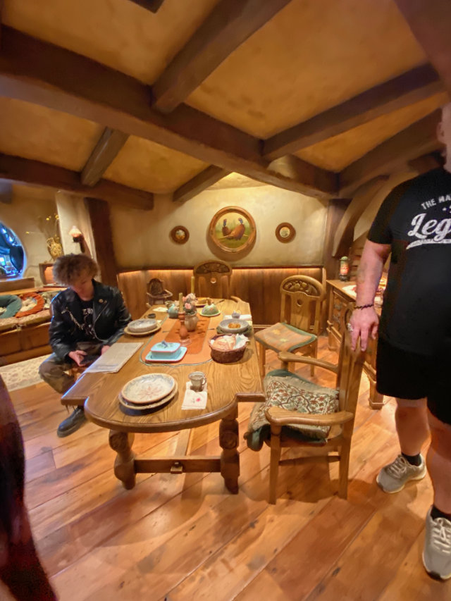 This year we were able to do something new. They had opened up 2 Hobbit homes, and it’s AMAZING! I’ll share photos because it’s hard to do the details justice. You can walk around, touch everything, sit on the furniture (a little hard for anyone over 3 and a half feet tall).