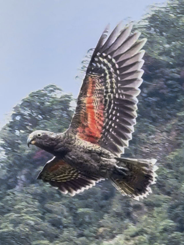 We met some brand new birds this trip in New Zealand. I must have seen a Pukeko before. But this time some had chicks and where we stayed outside New Plymouth we had a resident 3 individuals. Many of the birds in NZ are flightless. Pukekos can fly, they are just very bad at it! I kept confusing them with the Takehe. Takehe’s are very endangered and few are in the wild, and most of those are on small islands where there are no predators so the birds will survive. Keas fly well and are very beautiful with bright orange and yellow underwings.