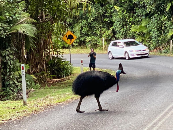 I believe I wrote about the cassowary in a previous newsletter. At the risk of repeating myself: We searched for a long time to find one. Shop keepers told us one had been seen but we just missed it. We were assured we would see them, just go out very early and at dusk. Which we did. We stalked areas they were known to cross through regularly.