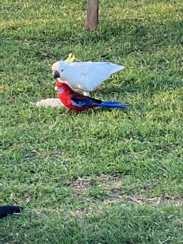 I loved these roos, and all the birds that would hang out waiting for the roos to finish with their snacks. Rabbits too would wait nearby and vie with the parrots for leftover oats.