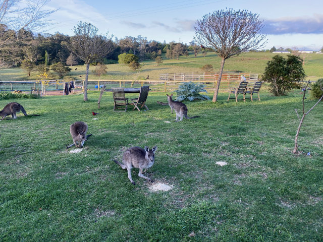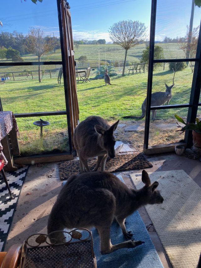 I found an Airbnb an hour and a half outside Sydney, that actually mentioned having a local mob of kangaroos on the property. The woman who owned it, Skye, had rescued wombats and ‘roos who had been in their mother’s pouch when hit and killed by cars. (Or shot by farmers 😣)
